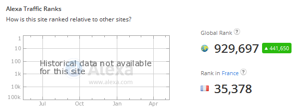 Niveau visites, Custom Protocol a globalement un peu baissé, mais reste stable avec des visites toujours supérieures à 700, avoisinant les 800 par jour. Cependant, côté Alexa, le site a réussi à franchir la barre du million, et je vous remercie tous pour avoir permis cela ! 😀 Dire qu’il y a encore quelques mois, on était le 3 500 000e site le plus visité au monde (et j’en étais déjà très fier), et qu’aujourd’hui on est devenu le 930 000e site le plus visité au monde (30 000e en France en moyenne !). Cela me fait chaud au cœur. <3