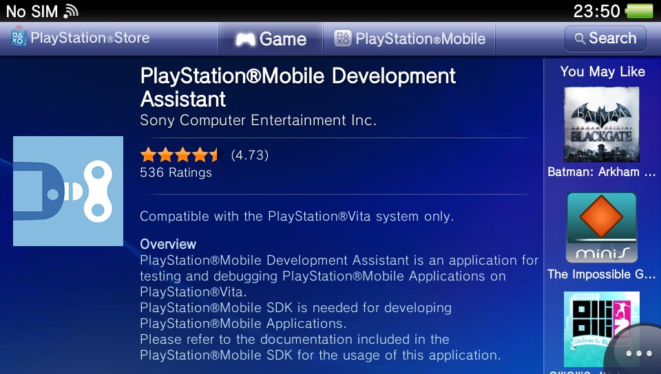 Depuis quelques jours, l’application du PSM Dev Assistant, qui est pour rappel obligatoire si vous souhaitez profiter des homebrews natifs à venir, n’est plus disponible en téléchargement à moins que vous ne l’ayez déjà dans votre « Liste de téléchargements ». Un coup dur pour les retardataires. Néanmoins, sachez qu’il existe une petite astuce by Yifan Lu qui risque bien d’être votre dernière chance pour vous procurer le logiciel avant qu’il ne soit définitivement trop tard, puisque Sony peut corriger ce bug à tout instant et que le PlayStation Mobile ferme ses portes très prochainement.